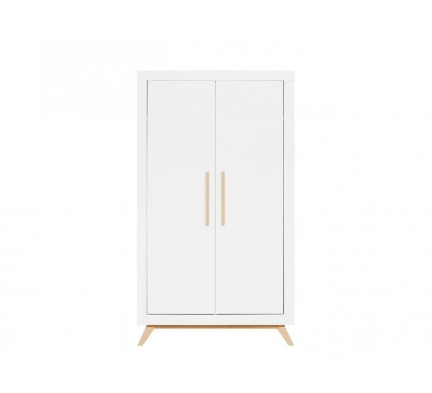Deze Bopita 2-deurskast uit de serie Fenna heeft een moderne en eigentijdse uitstraling dankzij het wit in combinatie met de blank gelakte houten accenten. De binnenkant van de kast bestaat uit twee vaste schappen, twee hangroedes en vier in hoogte verstelbare legplanken. Deze kast biedt dus meer dan voldoende opbergruimte voor veel spullen of kleding.