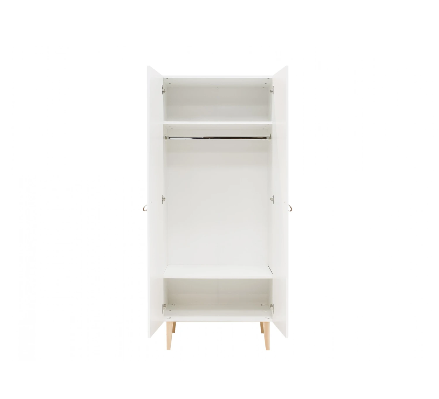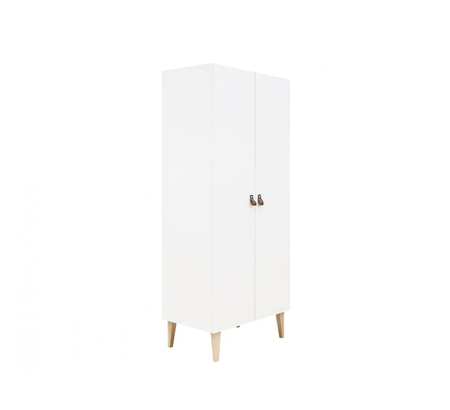 De 2-deurskast Indy van Bopita is voorzien van lederen handgrepen. De ranke pootjes zijn uitgevoerd in beukenhout. De kast is afgewerkt met een lak op waterbasis en is daarmee milieu- en kindvriendelijk. Het interieur bestaat uit twee legplanken en een hangroede.