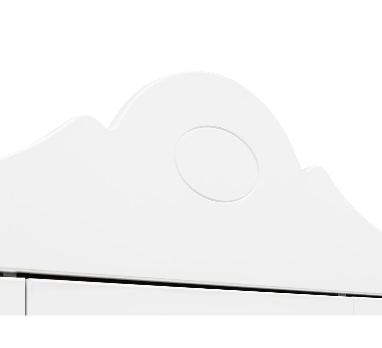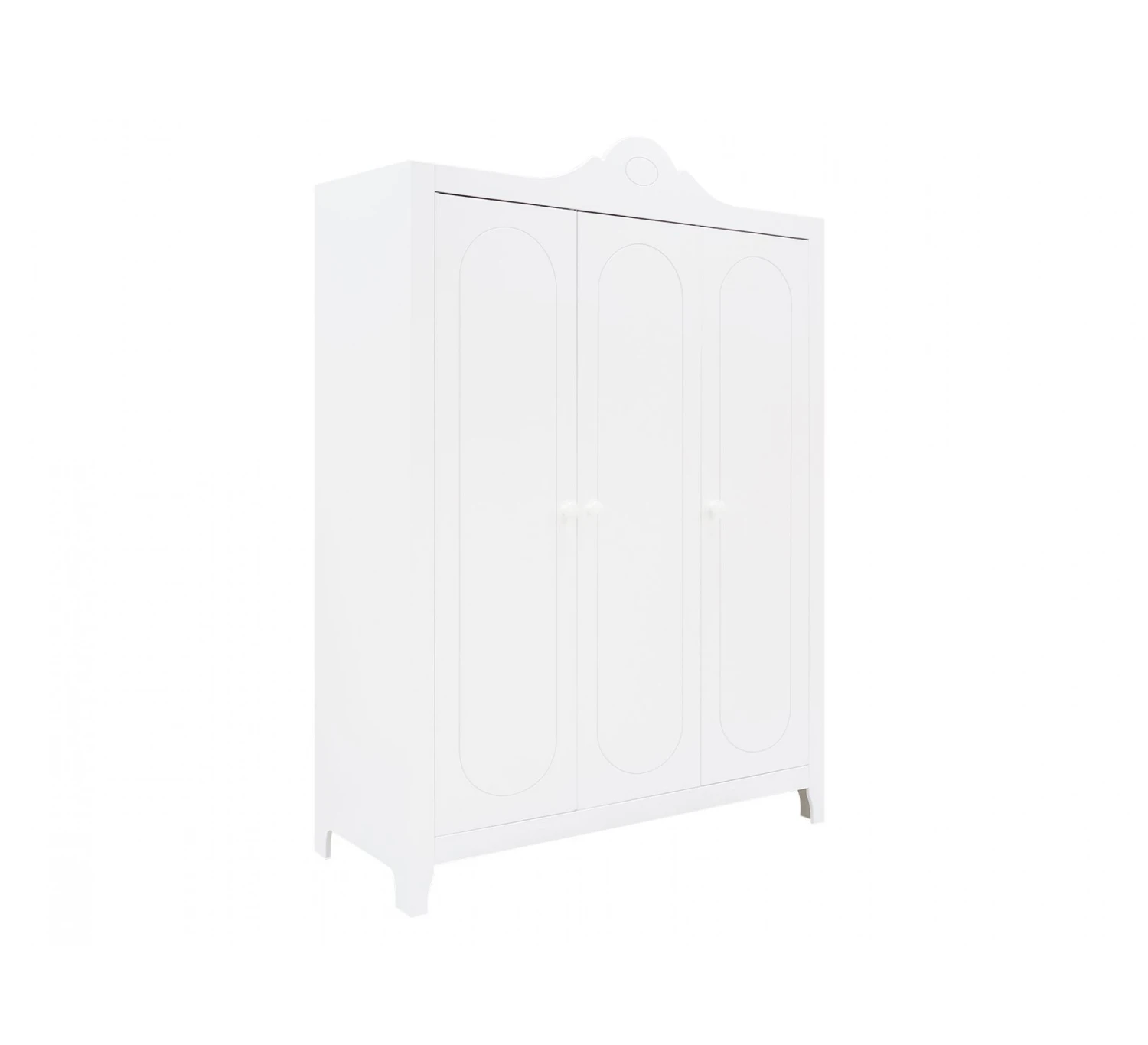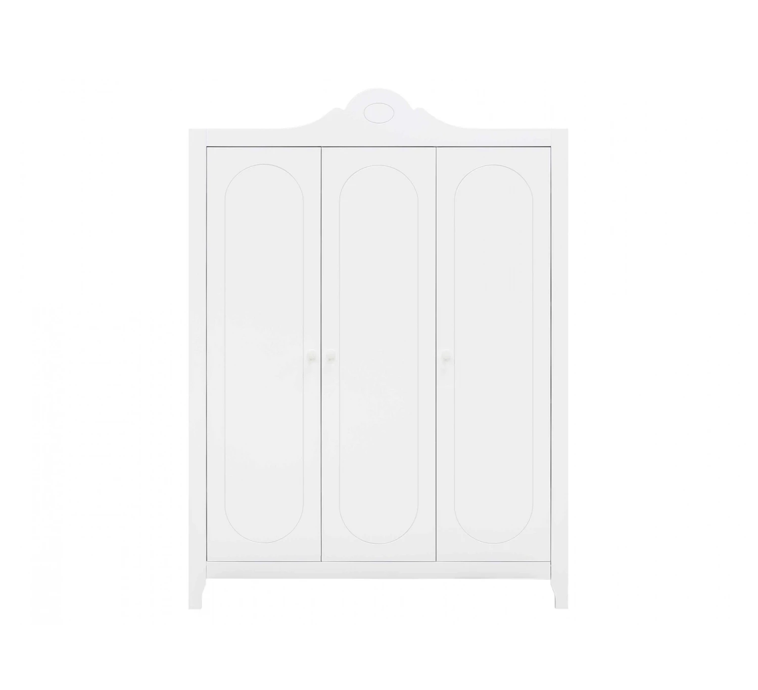 De 3-deurskast uit de serie Evi van Bopita is afgewerkt met een lak op waterbasis en is hierdoor milieu- en kindvriendelijk. De sierlijk gogolvde kam en groeven met afgeronden vormen in de deuren is kenmerkend voor de serie Evi. Achter de linkse en middelste deuren bevinden zich twee legplanken en een hangroede. Achter de rechter deur geven de vier legplanken veel opbergmogelijkheden!