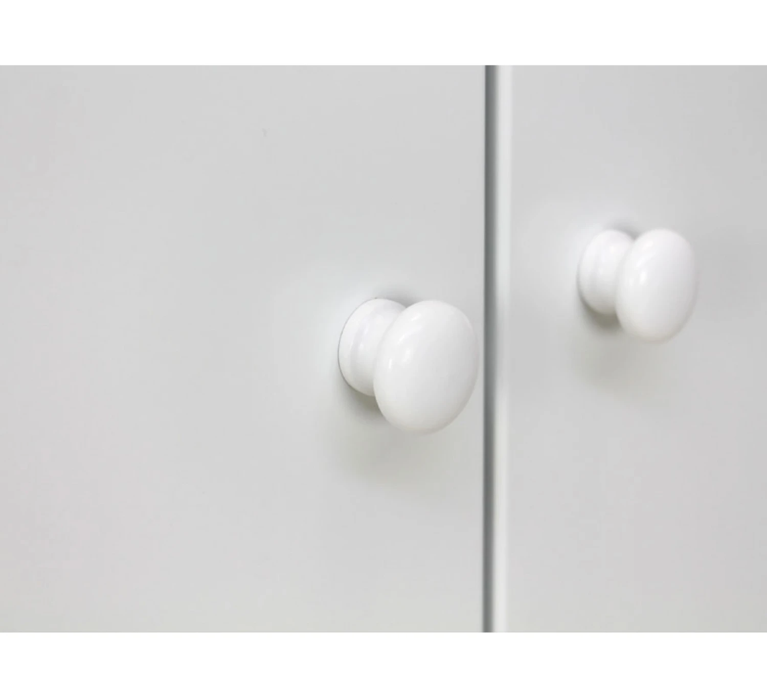 Commode 2-Deurs met 1 Lade, wit en een witte front bij de lade. De lade heeft een uitsparing als handgreep, de deuren zijn voorzien van mooie knoppen. Combineer deze barrier voor het veilig verschonen en aankleden van de baby, deze is apart verkrijgbaar.