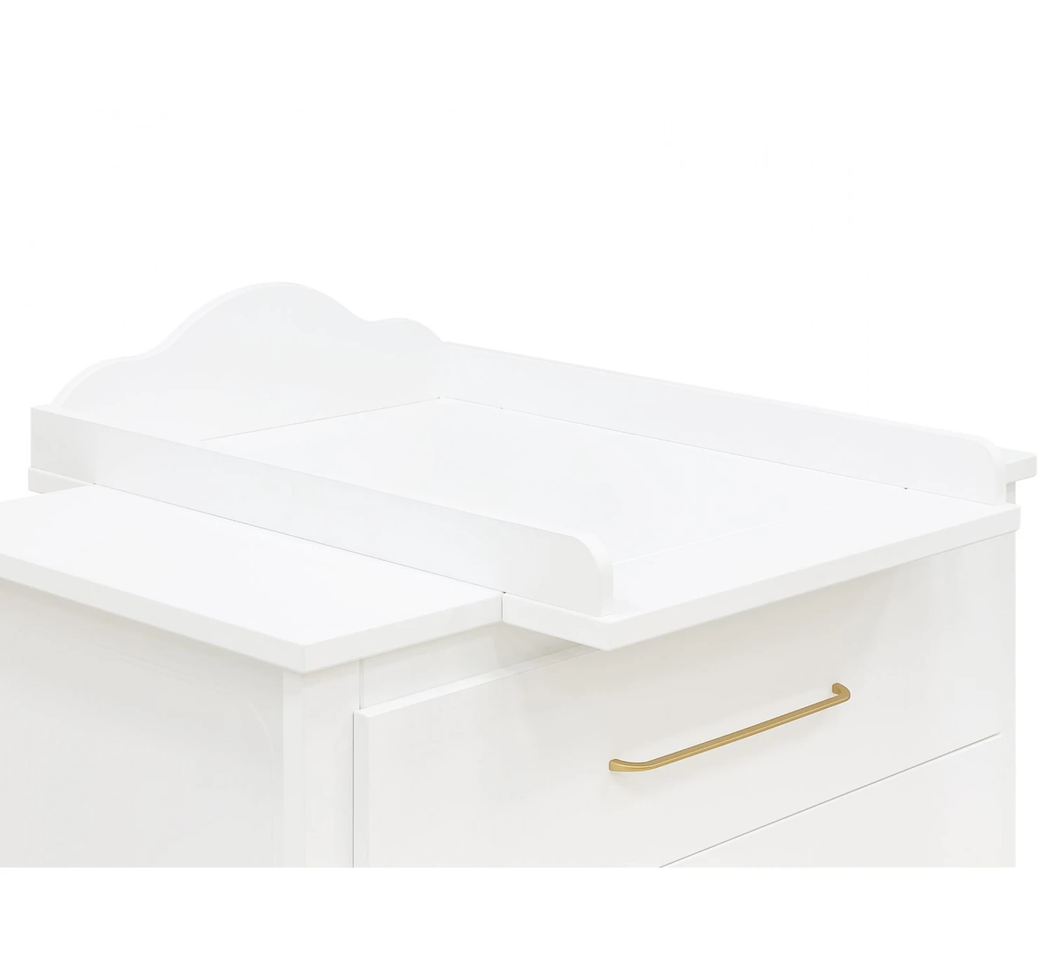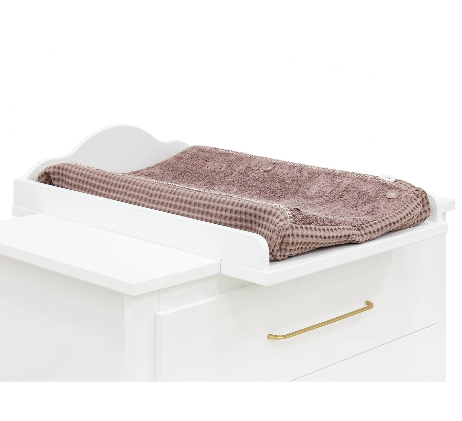 Vergroot het werkblad van de commode Elena met de barrier Elena van Bopita. Door gebruik te maken van deze bladvergroter, kun je je kindje gemakkelijk en veilig verschonen op de commode. De barrier is aan de achterzijde afgewerkt met golven die kenmerkend zijn voor de Elena serie. Let op: het opzetstuk steekt aan de voor- en achterzijde iets uit. Hierdoor komt de commode circa 10-15 cm van de wand af te staan. Als je kindje groot genoeg is, kun je de barrier weer verwijderen.