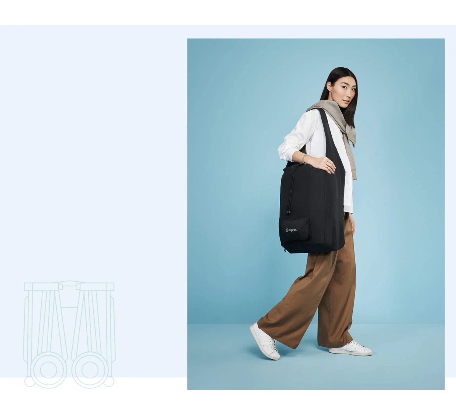 De Cybex travelbag geeft de Cubex Buggy Libelle de beste bescherming. Je vouwt de buggy in en schuift hem zo in de tas. Door het compacte formaat draag je de travelbag met de draagriem zo over je schouder. De stevige stof van de tas beschermt je buggy tegen krassen en vuil. Ideaal wanneer je de buggy even niet gebruikt.