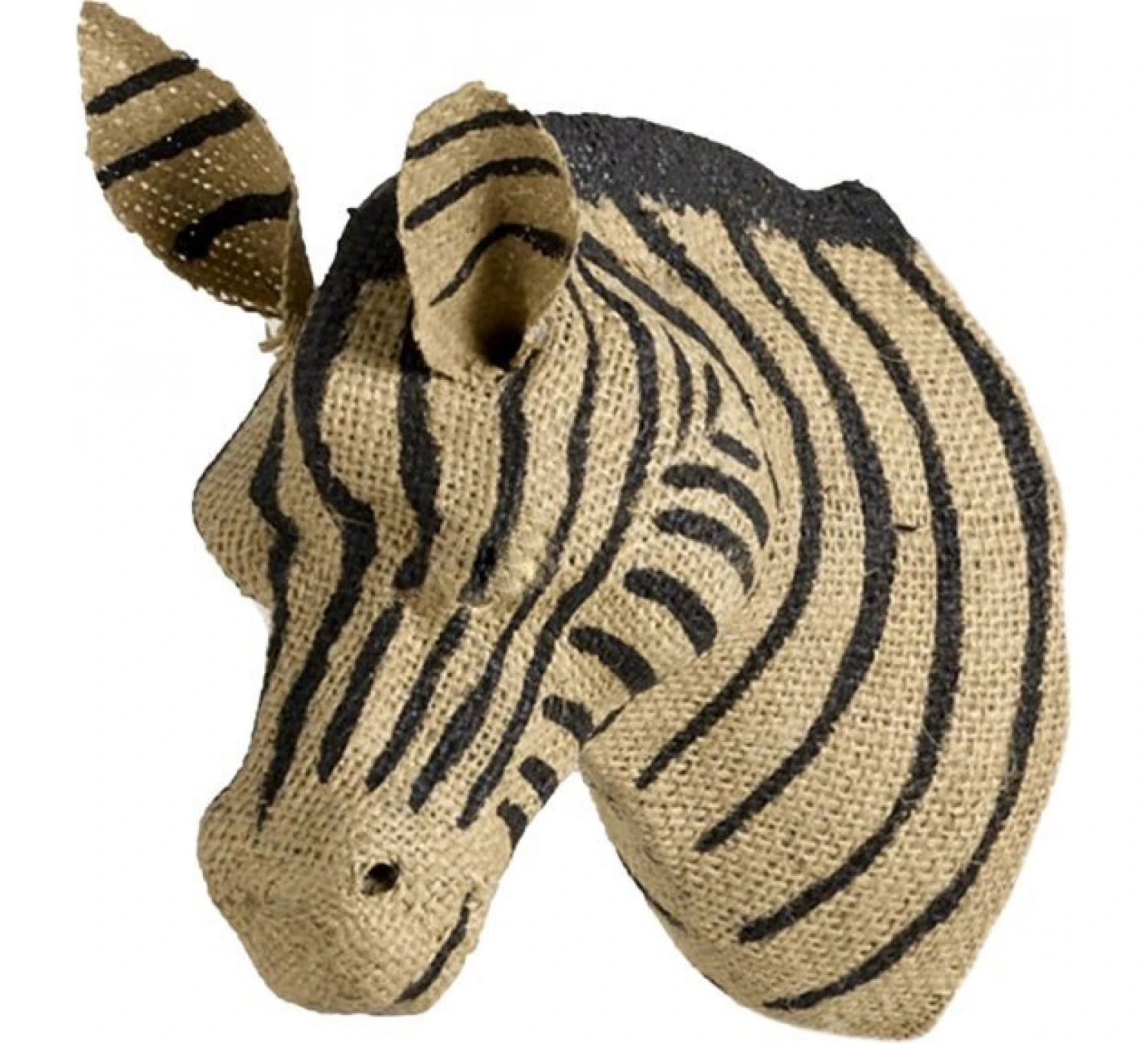 Deze zebrakop is een mooie accessoire voor in de baby- of kinderkamer. Deze dierenkop brengt sfeer in de kamer en staat mooi ter decoratie. De kop is volledig gemaakt van jute stof en is 100% handwerk.