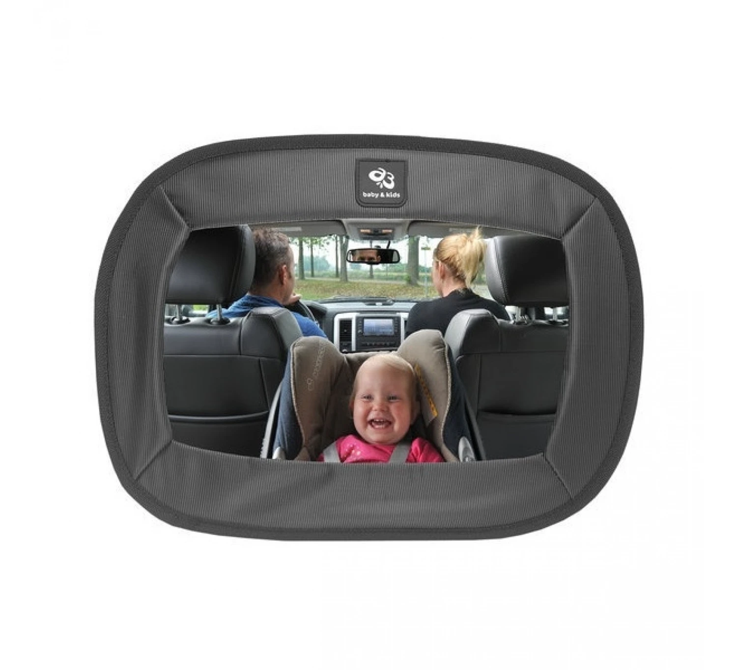 Met deze extra grote spiegel kun je gemakkelijk je kindje in de auto zien en belangrijker: je kindje kan jou ook zien. De spiegel is breukvast, voor extra veiligheid en past in de meeste voertuigen (met of zonder hoofdsteun) dankzij vier verschillende bevestigingsopties. Het speciale materiaal voorkomt dat de spiegel verschuift.