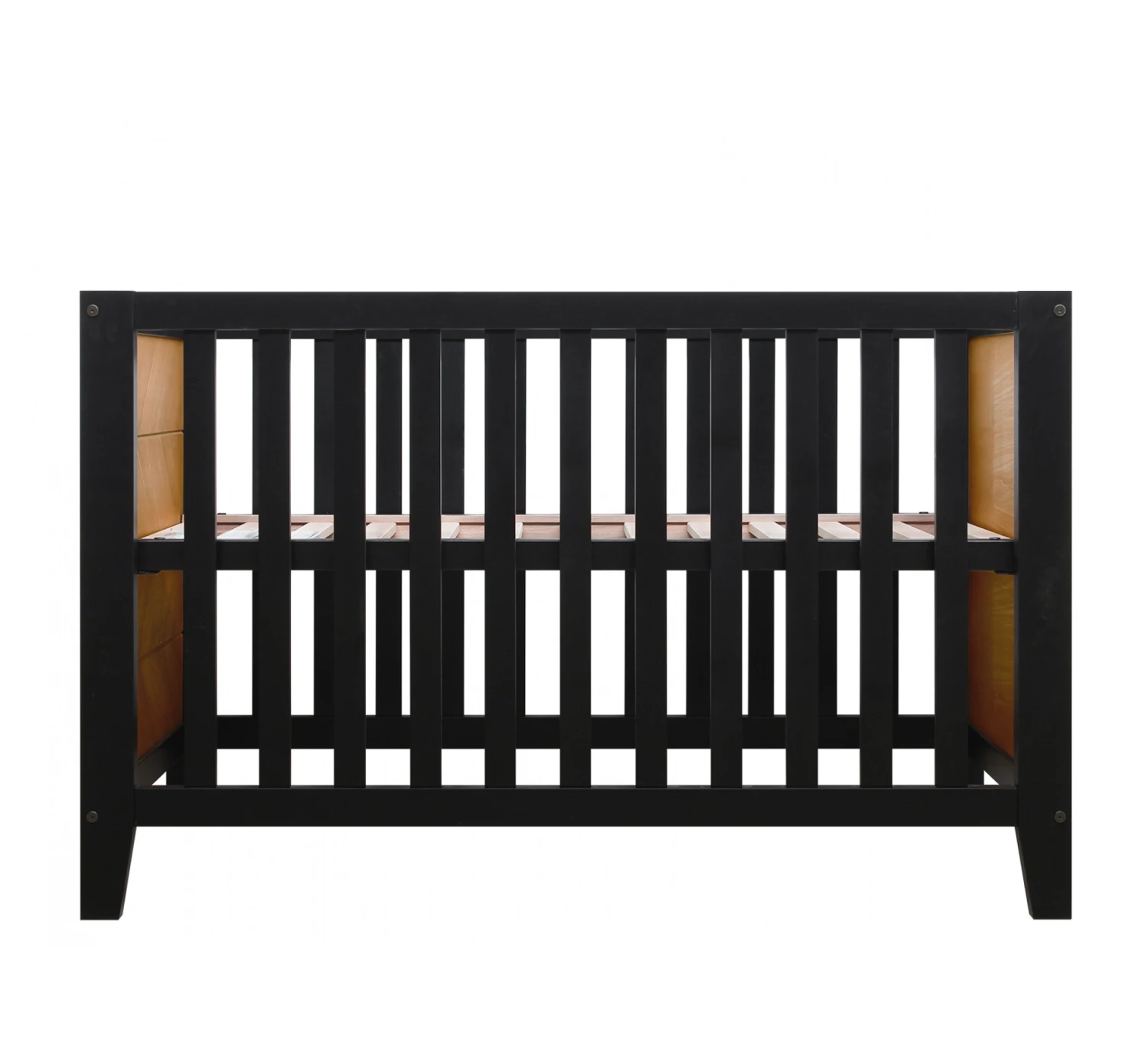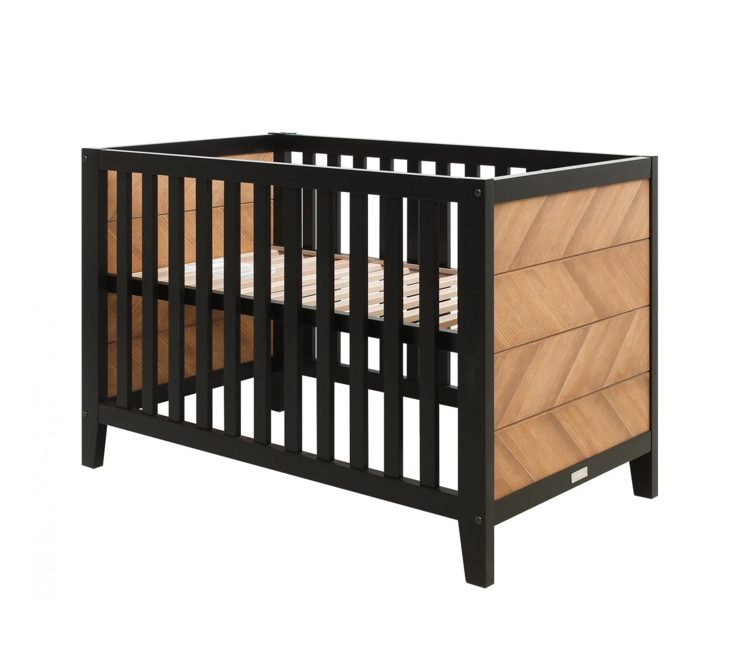 Het stijlvolle bed Job van Bopita is voorzien van platte spijlen en heeft een stoere combinatie van mat zwart en gefineerd hout. De bedbodem is verstelbaar in hoogte. Zodra je baby zich begint op te trekken kun je de bodem verlagen voor extra veiligheid. Combineer dit ledikant met de andere meubelen van de serie Job voor een mooi stijlvol geheel.